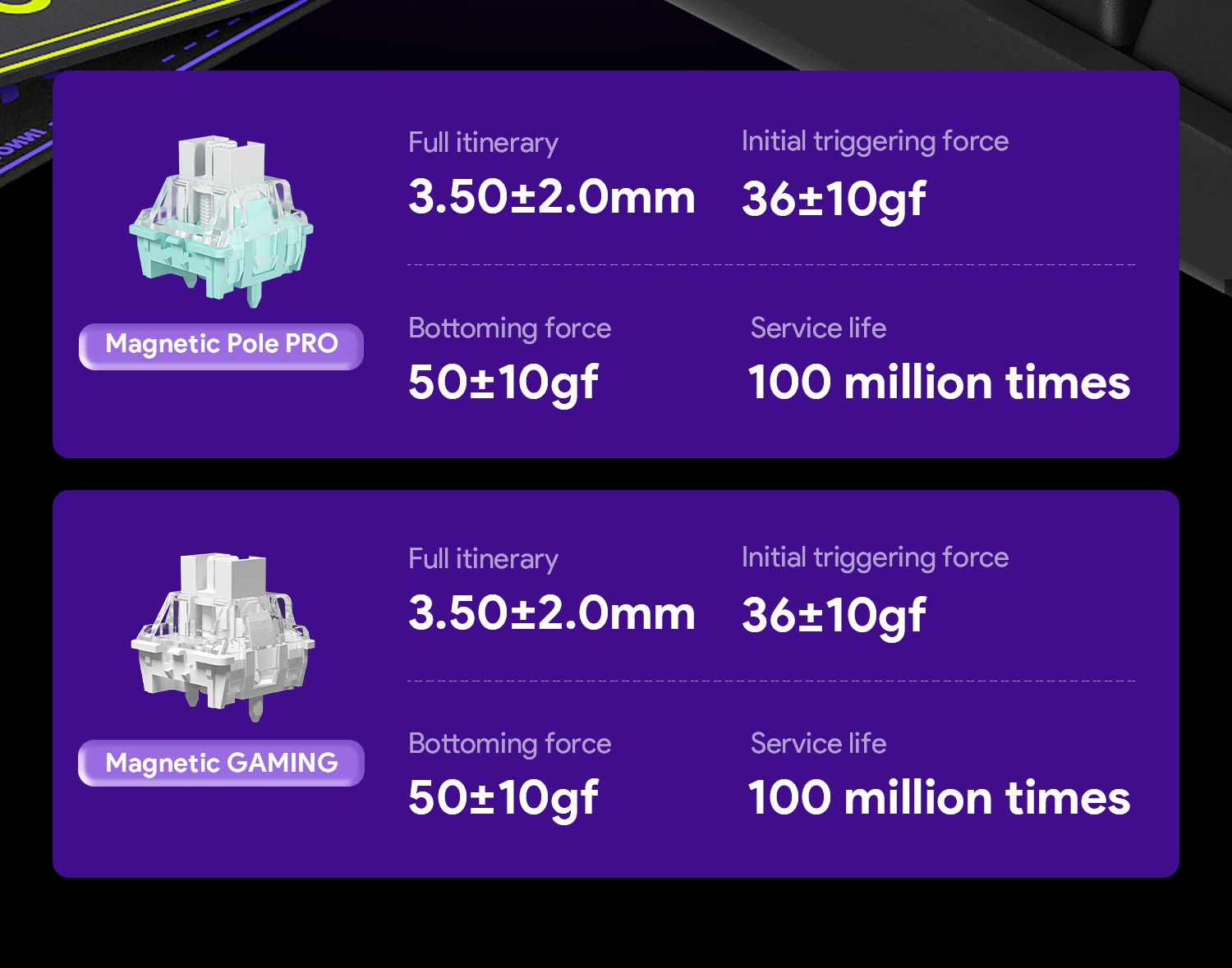 Instant activation and deactivation. The key resets the millisecond you lift your finger. Zero fixed reset points.